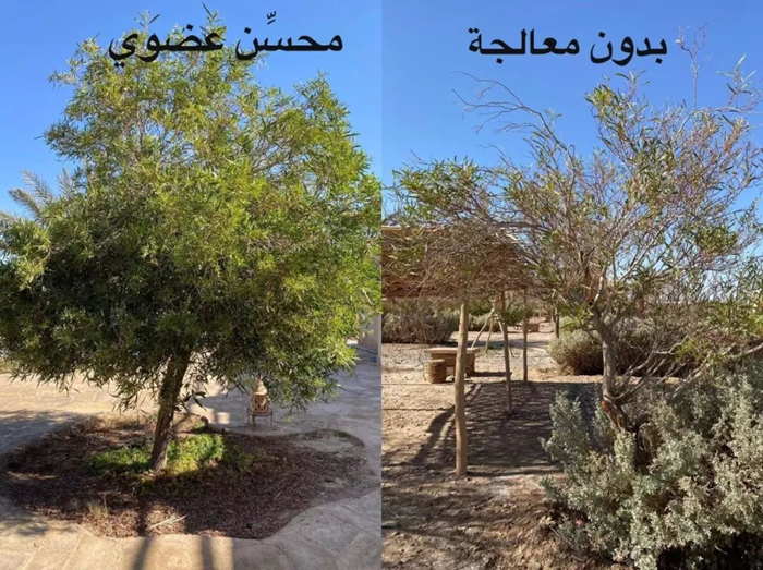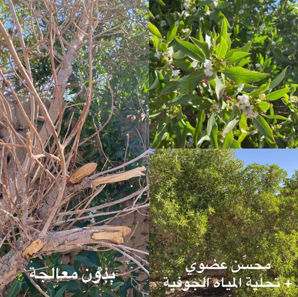 2021年使用土壤改良劑和苦咸水淡化技術(shù)后,每棵椰棗樹(shù)年用水量從600升降低至200升,枯樹(shù)復(fù)蘇