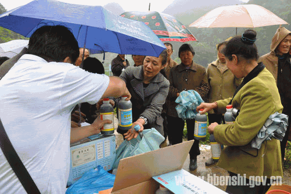 中國(guó)硒都網(wǎng)訊(記者 沈宏臣 通訊員 黃怡 王永健)5月3日,在土壤酸化調(diào)理劑發(fā)放現(xiàn)場(chǎng),恩施市農(nóng)業(yè)技術(shù)推廣中心工作人員正在為三岔鄉(xiāng)農(nóng)民發(fā)放土壤酸化治理劑“施地佳”。