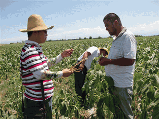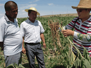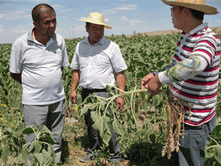 公司科技服務(wù)到團(tuán)場 2014/2/4 華宏生物 公司科技服務(wù)到團(tuán)場 2012年7月,公司委派總農(nóng)藝師劉軍帶領(lǐng)科技服務(wù)組下到新疆兵團(tuán)農(nóng)十師傳授“施地佳”土壤改良劑施用技術(shù)(組圖) 圖片編輯:陽光