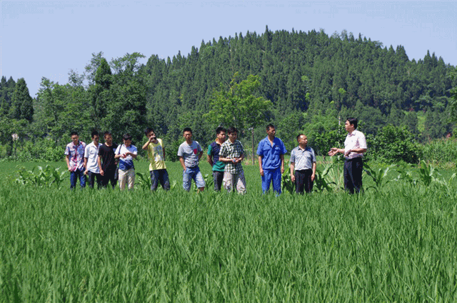 圖6:超級稻推廣員在田里為公司員工講解應用情況
