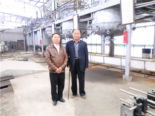 二位董事長在改良劑生產(chǎn)反應釜前留影