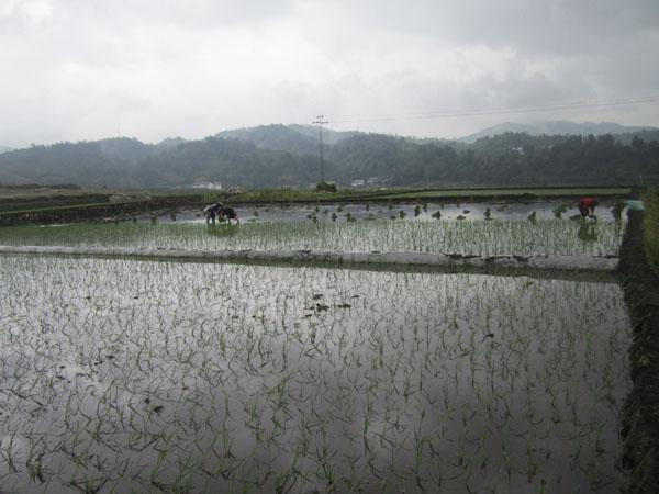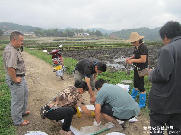 龍陵縣土肥站續(xù)農(nóng)業(yè)部2013年下達土壤調(diào)理劑“施地佳”在水稻上的2處理3重復(fù)試驗效果基礎(chǔ)上,我站與龍新鄉(xiāng)農(nóng)科站在勐冒村磚廠背后舉辦2014年水稻施用“施地佳”應(yīng)用效果示范項目工作,示范設(shè)2個處理(處理1:習(xí)慣施肥;處理2習(xí)慣施肥+施地佳土壤調(diào)理劑),不設(shè)重復(fù),處理間用薄膜隔埂,各處理單排單灌,避免串排灌,其他農(nóng)事活動一致。示范田于6月4日取土后并畝用“施地佳”2千克拌20倍細土均勻撒施地表后翻犁耙勻,6月5日示范田移栽工作結(jié)束并進行多點定苗,便于以后秧苗動態(tài)觀察記載工作。