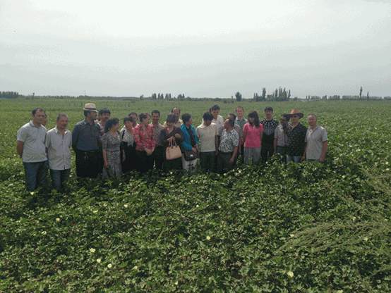 圖為:維族教授艾買爾江在向李總介紹項(xiàng)目實(shí)施情況,并說你們的”施地佳“土壤調(diào)理劑應(yīng)用效果很好