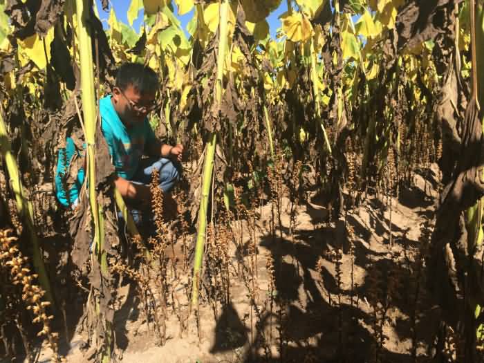 圖2:內(nèi)蒙古五原縣食葵列當(dāng)危害使食葵顆粒無(wú)收