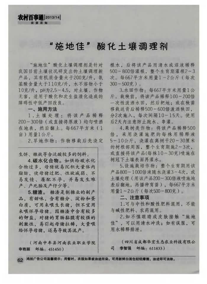 《農(nóng)村百事通》2013年第14期 “施地佳”酸化土壤調(diào)理劑