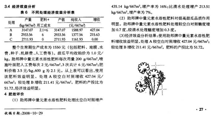 《新疆農業(yè)科技》2008年第6期 “助邦”牌中量元素水溶性肥料在甜瓜上肥效試驗總結
