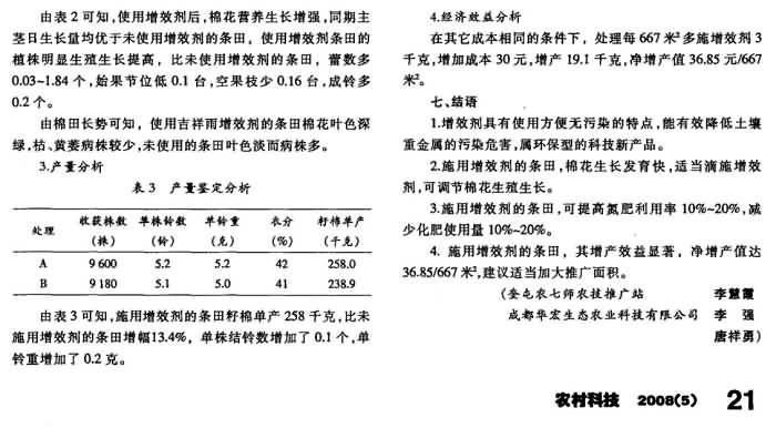 《農(nóng)村科技》2008年第5期 “吉祥雨”促根增效劑對棉花黃、枯萎病抗病性試驗(yàn)