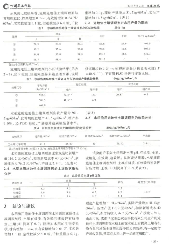 《四川農(nóng)業(yè)科技》2015年第2期 浦江縣“施地佳”土壤調(diào)理劑在酸性土壤田間改良研究