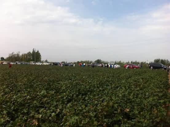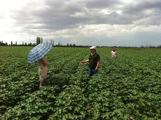 成都華宏生態(tài)農業(yè)科技有限公司將示范田的地點選在了第八師121團13連職工雷秀英的同一塊棉田(面積80004m²),這一地區(qū)位于天山以北,光照充足,熱量豐富,屬典型灌溉農業(yè)區(qū),為灌耕灰漠土。供試地連續(xù)種植棉花26年以上,2013年該棉田枯黃萎病平均發(fā)病率為29%,其中局部棉花高達71%——可以說,是一塊非常具有代表性的“樣本對比試驗田”。