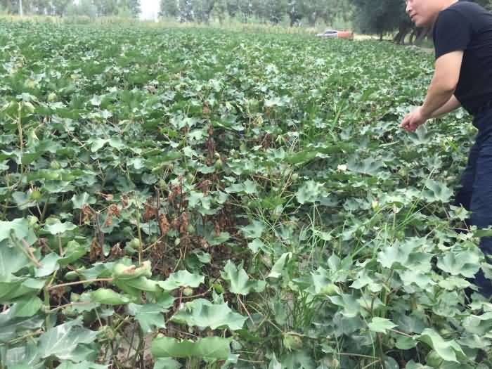 新疆生產(chǎn)建設(shè)兵團(tuán)第八師142團(tuán)16連棉花種植三十多年,棉花枯萎、黃萎病嚴(yán)重2010年棄耕,我們與種植大戶商量自2011年開(kāi)始,采用兵團(tuán)第八師142團(tuán)16連棉花種植三十多年,棉花枯萎、黃萎病嚴(yán)重2010年棄耕,我們與種植大戶商量自2011年開(kāi)始,采用水肥一體化改良土壤,生物防病,當(dāng)年見(jiàn)效棉花防病效果與對(duì)照田達(dá)到70%,平均畝產(chǎn)達(dá)300公斤,我們連續(xù)實(shí)施至今第六年,今天到地里察看整個(gè)1000畝未發(fā)現(xiàn)病株,預(yù)測(cè)平均畝產(chǎn)達(dá)400公斤。隔壁田塊發(fā)病率達(dá)40%,預(yù)測(cè)產(chǎn)量250公斤。事實(shí)證明,土壤改良棉花頑癥治療不是難題!改良土壤,生物防病,當(dāng)年見(jiàn)效棉花防病效果與對(duì)照田達(dá)到70%,平均畝產(chǎn)達(dá)300公斤,我們連續(xù)實(shí)施至今第六年,今天到地里察看整個(gè)1000畝未發(fā)現(xiàn)病株,預(yù)測(cè)平均畝產(chǎn)達(dá)400公斤。隔壁田塊發(fā)病率達(dá)40%,預(yù)測(cè)產(chǎn)量250公斤。事實(shí)證明,土壤改良棉花頑癥治療不是難題!