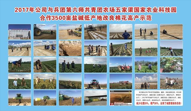 據(jù)介紹,五家渠國家農(nóng)業(yè)科技園創(chuàng)立于2012年4月,是由國家科技部批準(zhǔn)建設(shè)的現(xiàn)代化農(nóng)業(yè)示范園區(qū)。園區(qū)核心區(qū)位于新疆生產(chǎn)建設(shè)兵團(tuán)第六師共青團(tuán)農(nóng)場,由現(xiàn)代農(nóng)業(yè)節(jié)水技術(shù)示范園、設(shè)施農(nóng)業(yè)示范園、現(xiàn)代畜牧產(chǎn)業(yè)園、特色林果產(chǎn)業(yè)園、農(nóng)產(chǎn)品加工產(chǎn)業(yè)園及信息技術(shù)中心、科技研發(fā)中心、管理服務(wù)中心等組成,占地面積達(dá)7萬畝地。其中3500畝的棉花種植區(qū),一直以來是兵團(tuán)和農(nóng)場重點(diǎn)攻關(guān)增產(chǎn)的項(xiàng)目,卻受制于當(dāng)?shù)佧}堿化的惡劣環(huán)境,始終處于低產(chǎn)歉收的狀態(tài)。