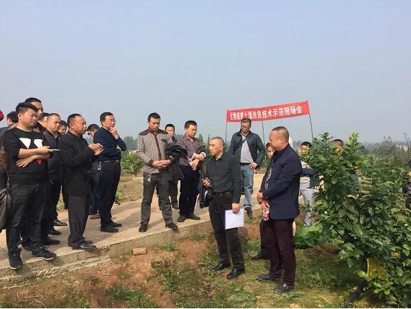 示范現(xiàn)場會由安岳縣政府、安岳縣檸檬產(chǎn)業(yè)局組織,全縣各鄉(xiāng)鎮(zhèn)檸檬專業(yè)技術(shù)員、種植大戶、合作社、檸檬產(chǎn)業(yè)公司、農(nóng)資公司一行100余人到場參加,并共同參觀了華嚴(yán)鎮(zhèn)安岳國家農(nóng)業(yè)科技園實施生物有機(jī)水肥一體化技術(shù)在檸檬生產(chǎn)上的應(yīng)用,該技術(shù)應(yīng)用由成都華宏生物科技有限公司與安岳檸檬產(chǎn)業(yè)局共同合作發(fā)起。