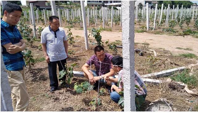 參觀考察隊伍一行人在參觀成都華宏生物公司過后,直接前往水肥一體化示范基地,在現(xiàn)場勘測了葡萄、柑橘、火龍果、柚子果園基地,經(jīng)過實地考察得出更合理的方案,并依據(jù)水肥一體化的實際需求,進行規(guī)劃設(shè)計滴管設(shè)施方案。在參觀結(jié)束后,結(jié)合富順縣農(nóng)業(yè)局推廣水肥一體化化肥減量增效示范項目,徐德海總經(jīng)理于6月16日將新的設(shè)計方案交給了陳總,獲得陳總的高度認可,并邀請陳總一行人于6月17日再次來到成都華宏公司蒞臨參觀考察。