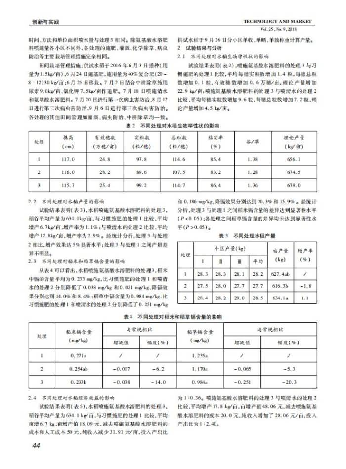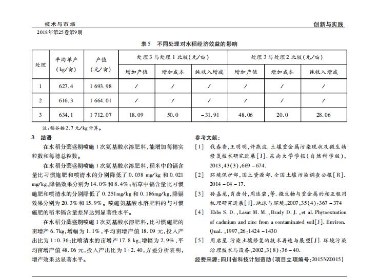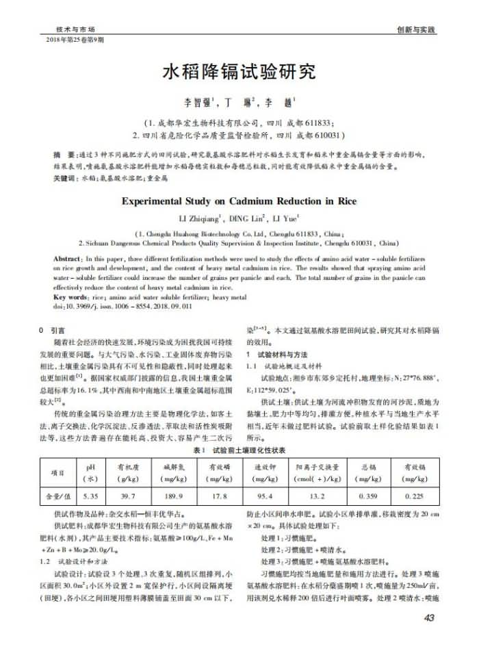 《技術(shù)與市場》2018年 第9期 水稻降鎘試驗(yàn)研究