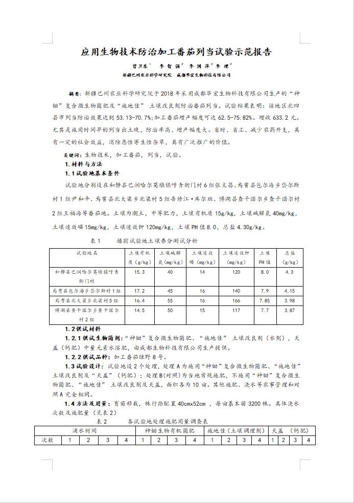 應(yīng)用生物技術(shù)防治加工番茄列當(dāng)試驗(yàn)示范報(bào)告