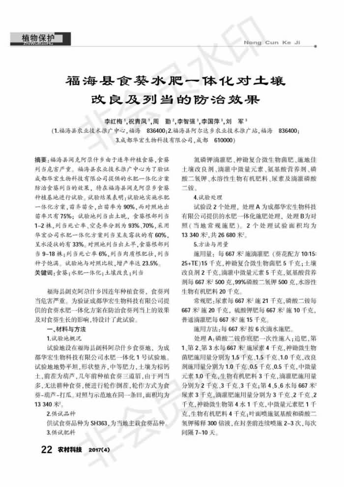 福海縣食葵水肥一體化對土壤改良及列當?shù)姆乐涡Ч?/h1>