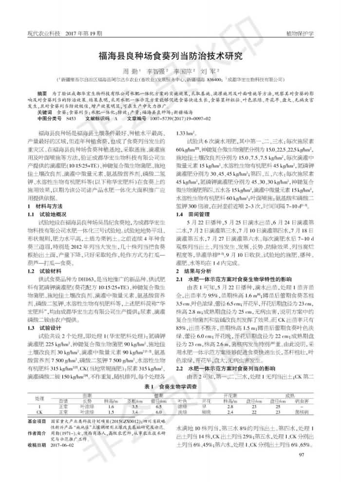 福海縣良種場食葵列當防治技術研究