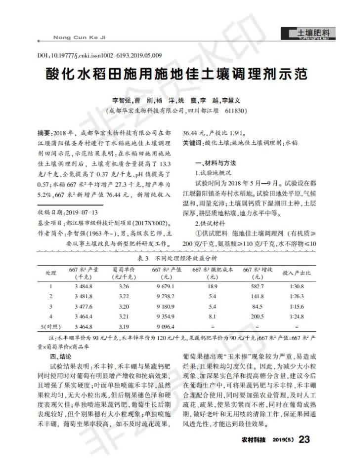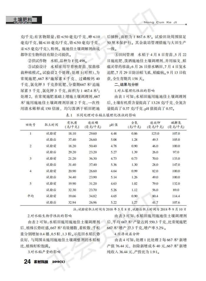 酸化水稻田施用施地佳土壤調(diào)理劑示范