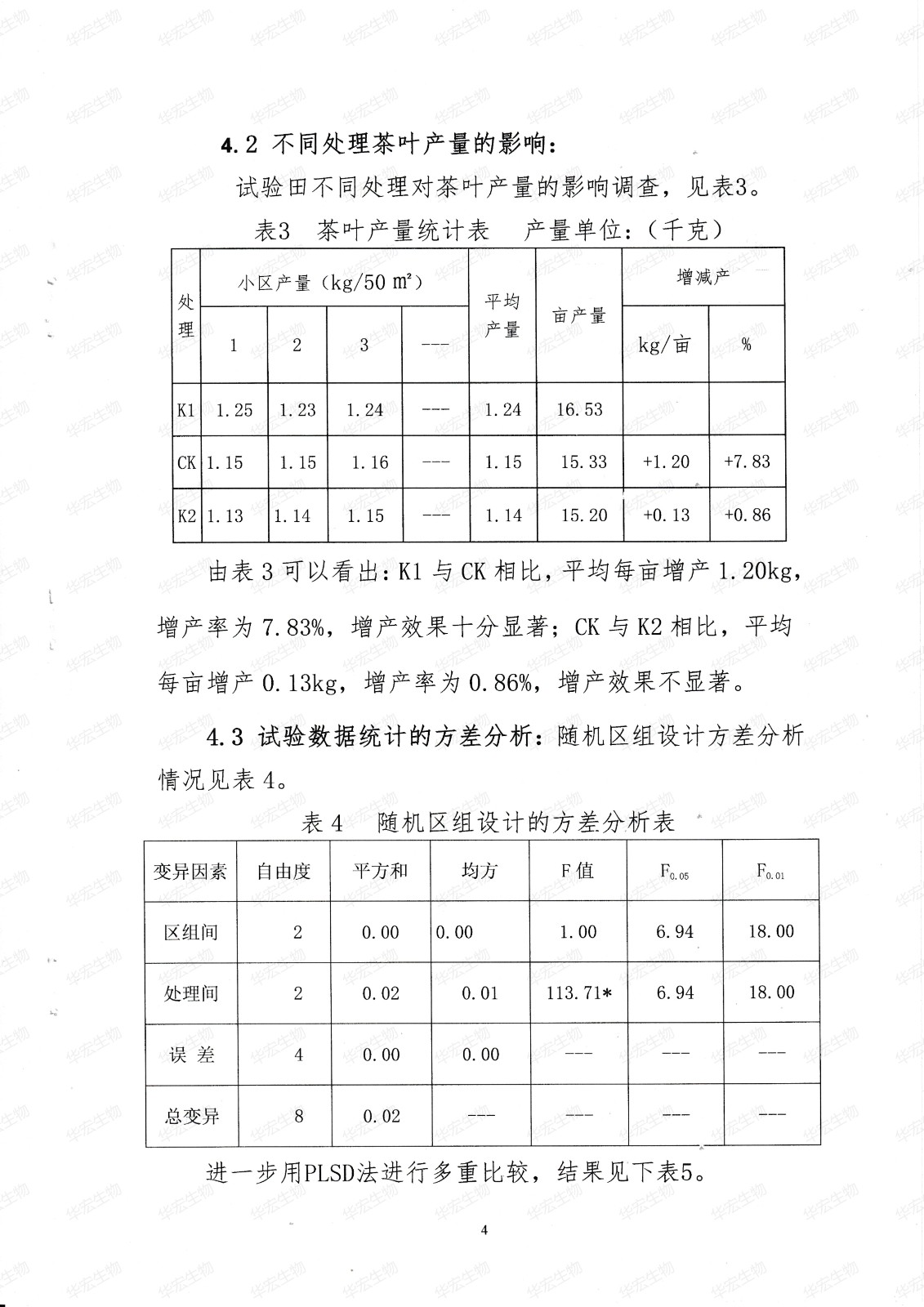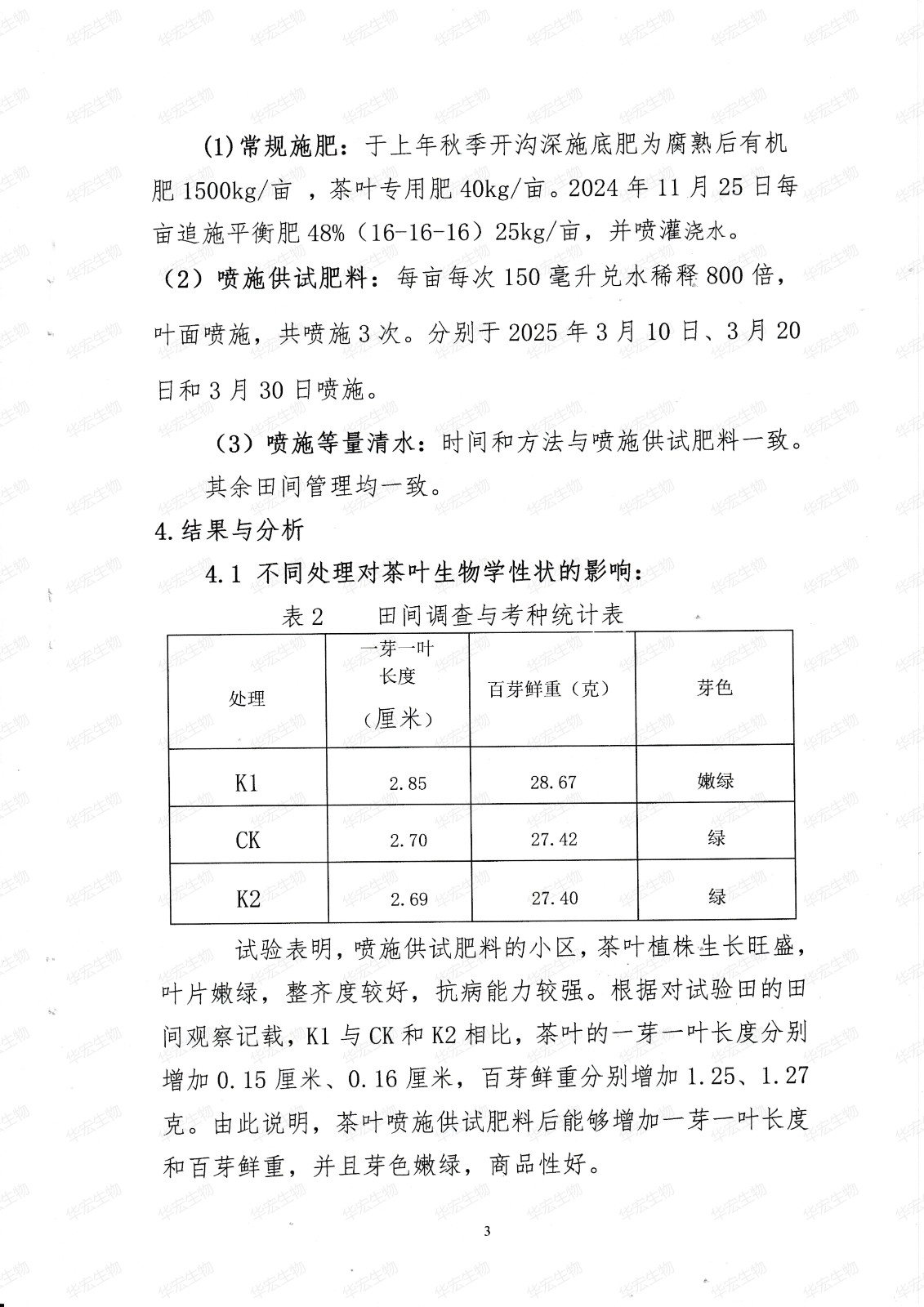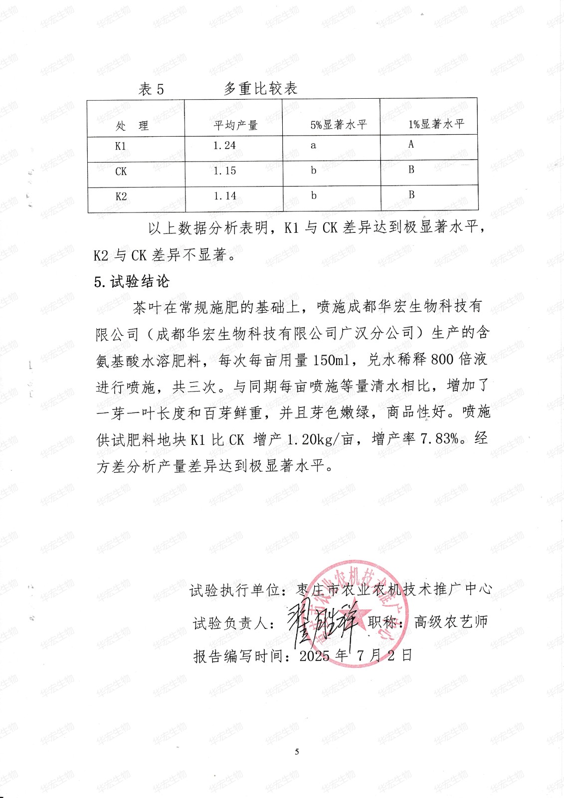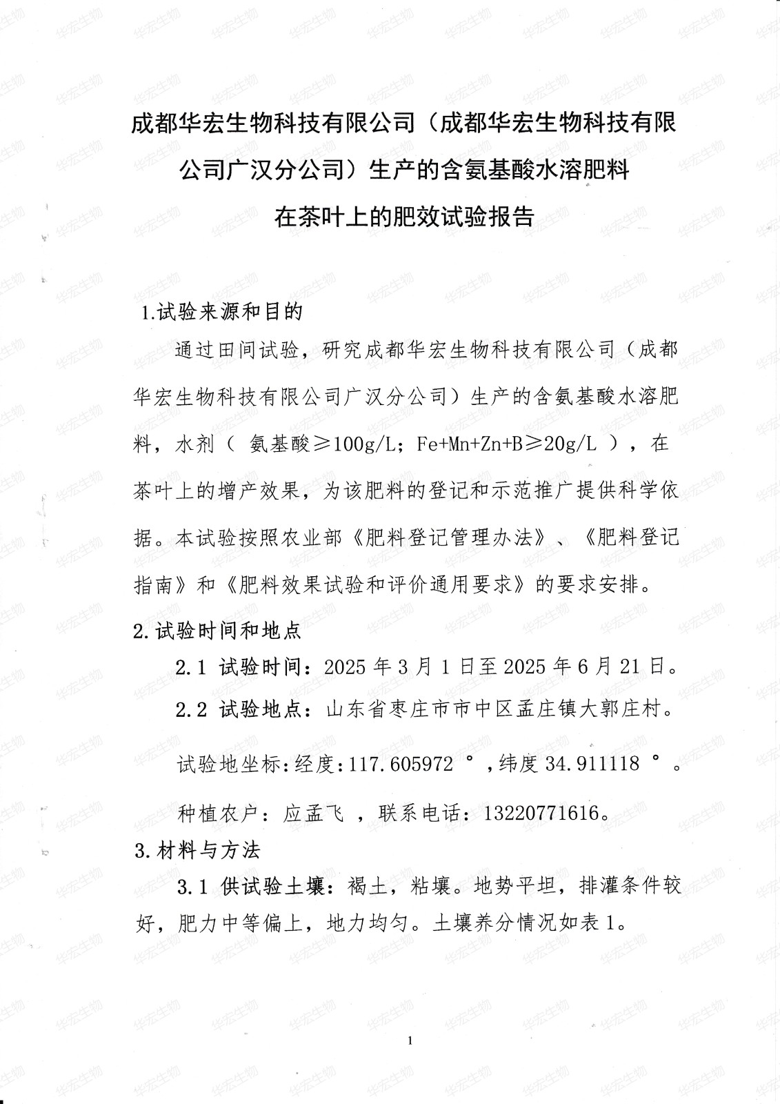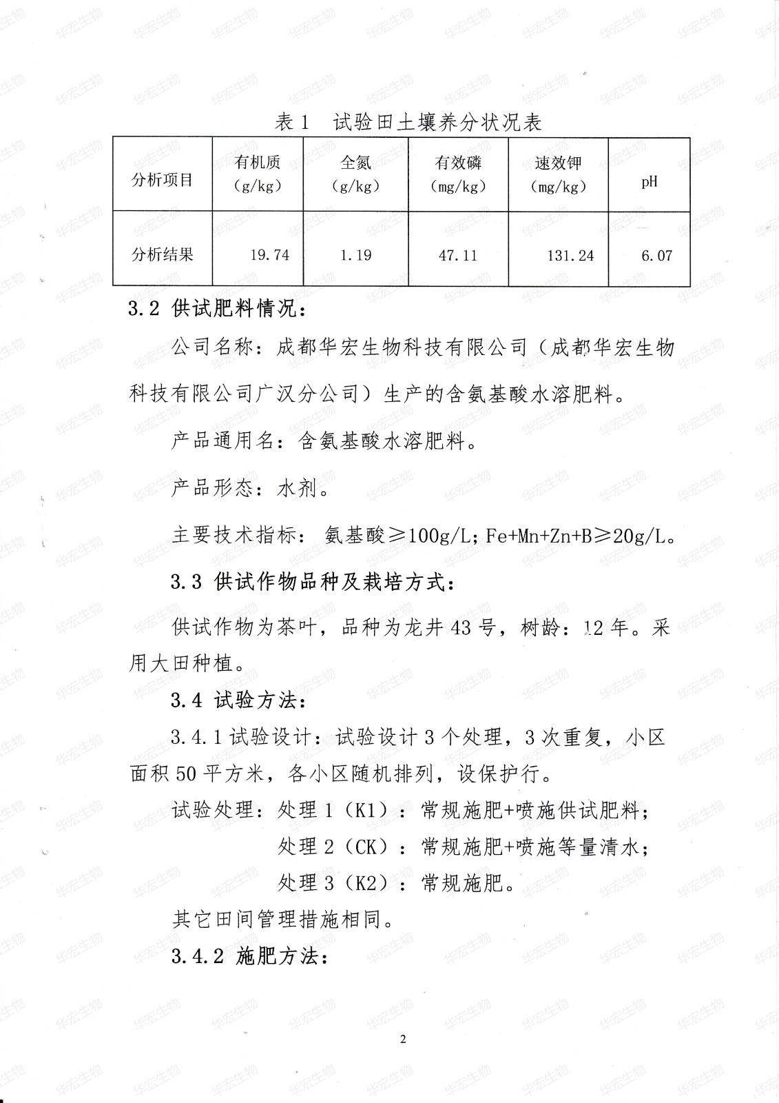 成都華宏生物科技有限公司生產(chǎn)的含氨基酸水溶肥料在茶葉上的肥效試驗報告