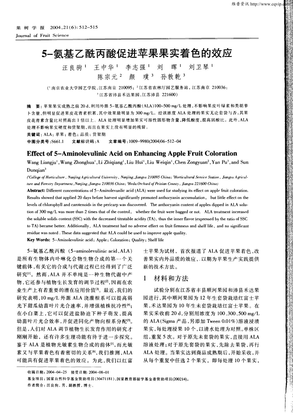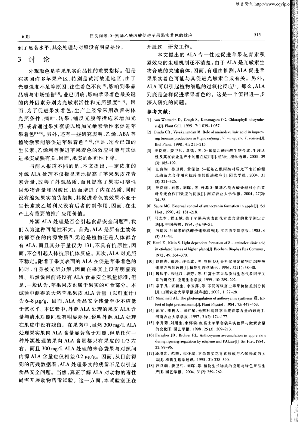 5-氨基乙酰丙酸促進蘋果果實著色的效應