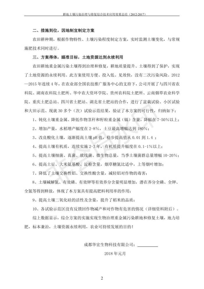 重金屬污染治理試驗示范匯集2018.1.21成都華宏生物科技有限公司(合成本)(二)