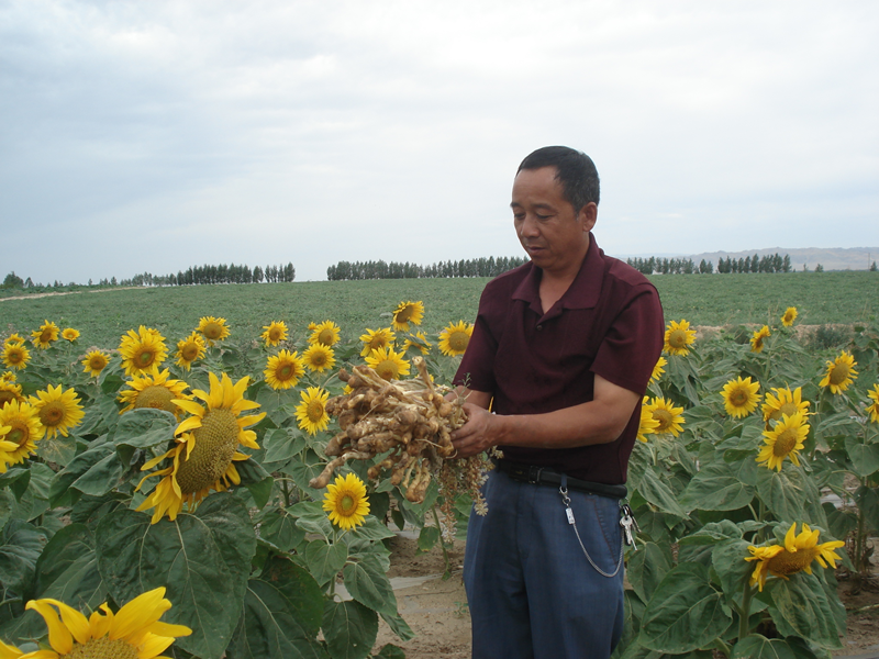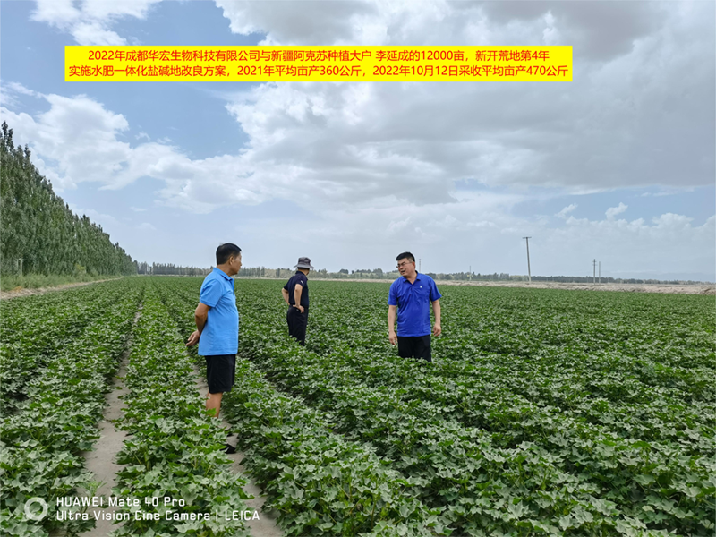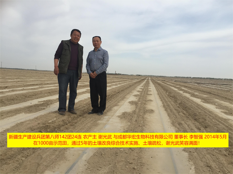 2005年與農(nóng)八師炮臺(tái)土壤改良試驗(yàn)站合作,圖為曹新成站長在121團(tuán)布置示范田采用了 我公司推出水肥一體化+有機(jī)改良鹽堿土壤+功能生物菌防治土傳病+微生物培肥地力+養(yǎng)分平衡的全程方案