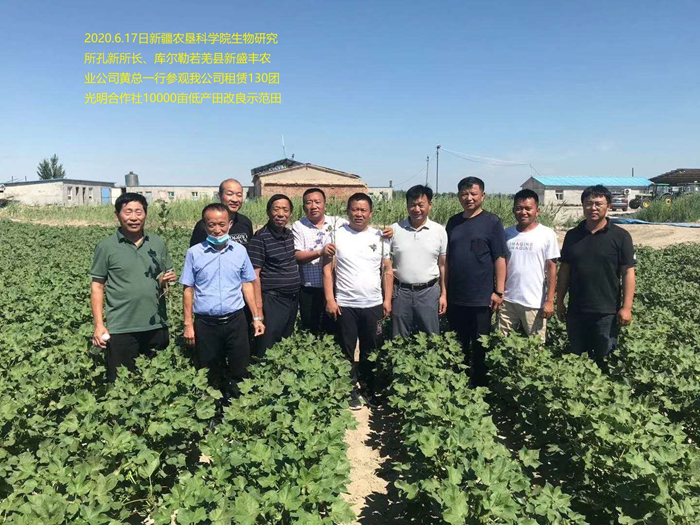 2020年6月17日新疆農(nóng)墾科學(xué)院生物研究所參觀我公司130團(tuán)光明合作社10000畝地產(chǎn)田改良示范田