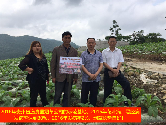 2016年貴州省道真縣煙草公司的示范基地,2015年花葉病、黑脛病發(fā)病率達(dá)到30%,2016年發(fā)病率2%煙草長勢良好