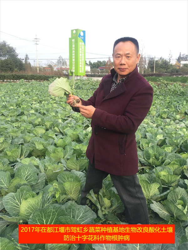 2017年在都江堰市駕虹鄉(xiāng)蔬菜種植基地生物改良酸化土壤防治十字花科作物根腫病